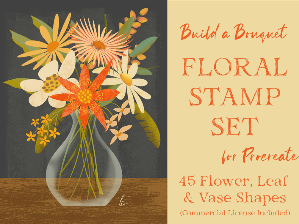 Build a Bouquet Floral Stamp Set for Procreate | Flower, Leaf & Vase Shapes