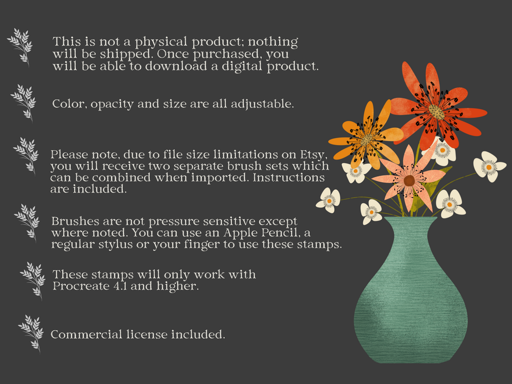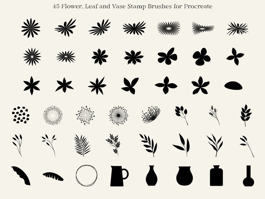 Procreate Flower Stamps | 45 Hand Drawn Floral, Leaf and Vase Shapes